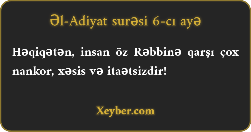 Həqiqətən, insan öz Rəbbinə qarşı çox nankor, xəsis və itaətsizdir!