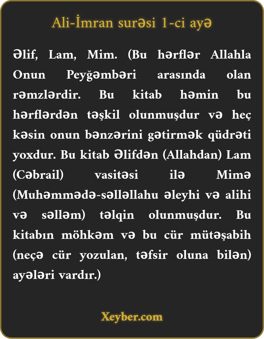 NUR TƏFSİRİ: Ali-İmran surəsi / ayə 1