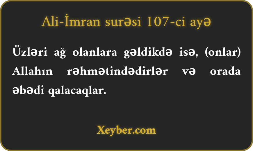 "Amma üzü ağ olanlar Allahın rəhmətinə qərq olub onda əbədi qalarlar.”
