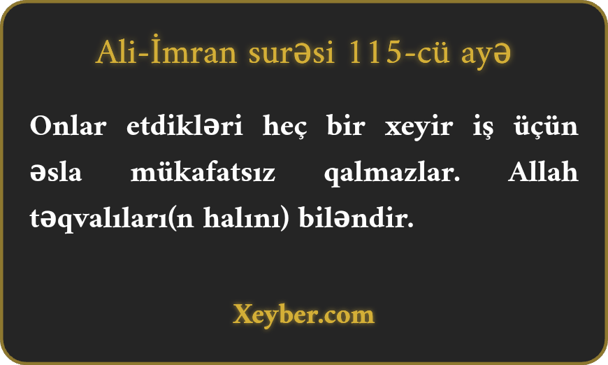 "Onların gördüyü xeyir işlər heç vaxt dəyərləndirilməmiş qalmaz. Allah təqvalılardan xəbərdardır.”