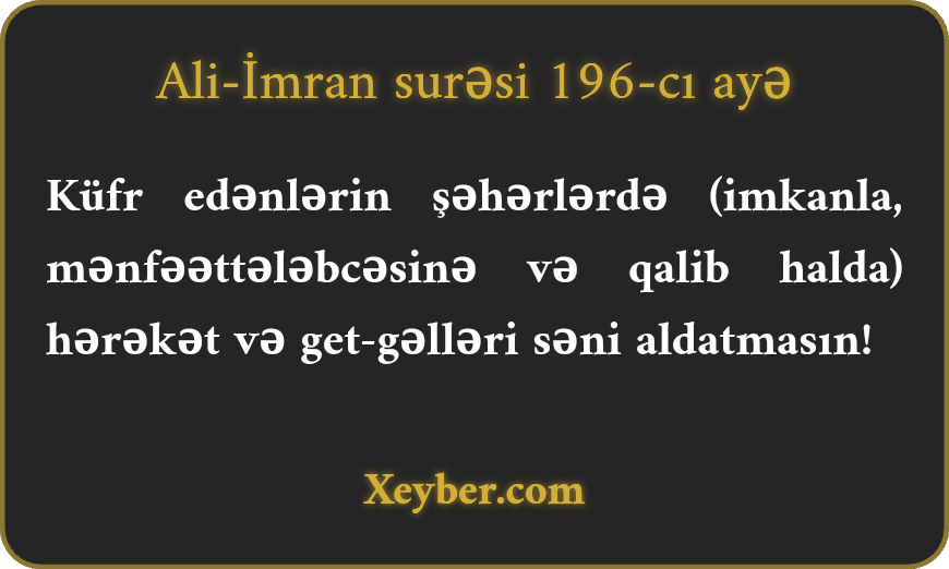 "Şəhərlərdə kafirlərin get-gəli səni aldatmasın.”