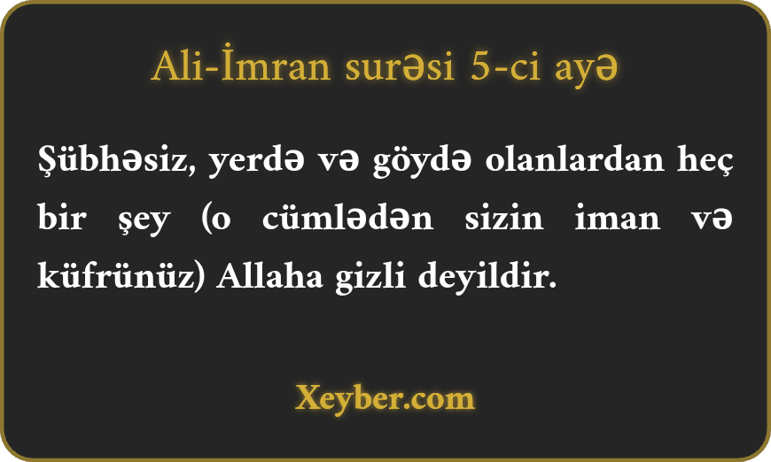 "Həqiqətən, nə yerdə, nə də göydə heç bir şey Allaha gizli qalmaz.”