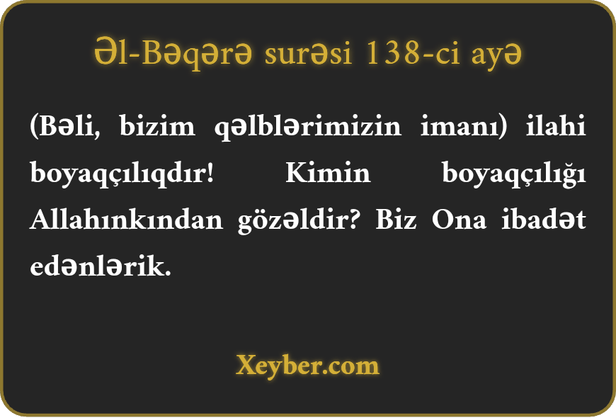 "(Budur) ilahi rəng? Rəngdə Allahdan üstünü kimdir?! Biz yalnız Ona ibadət edirik.”