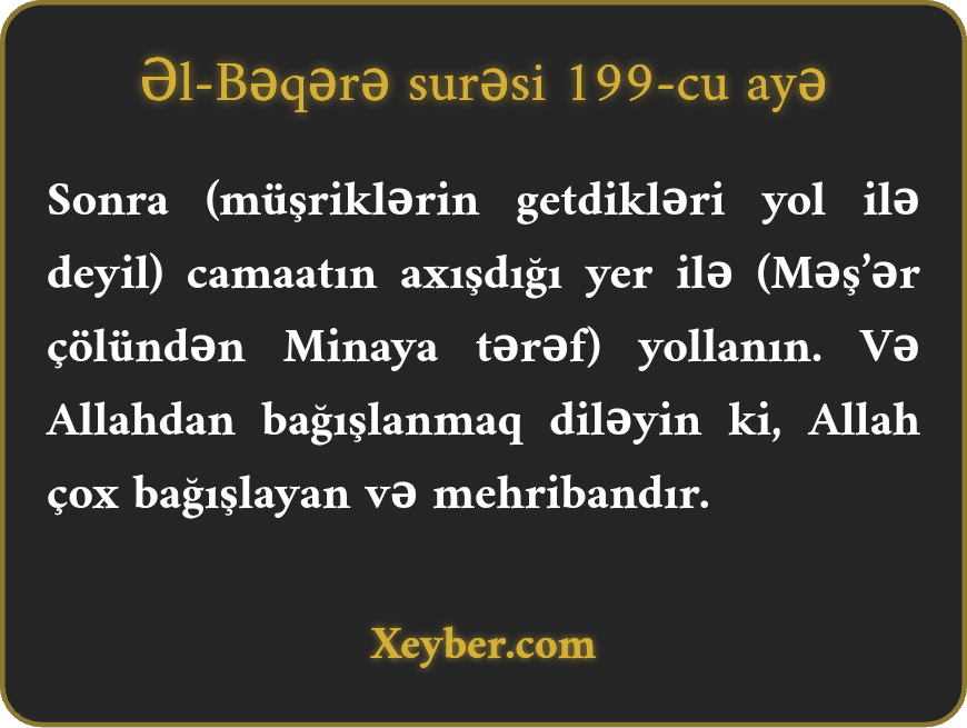 "Sonra xalqın köçdüyü yerdən köçün. Allahdan bağışlanmaq istəyin ki, Allah bağışlayan və mehribandır.”