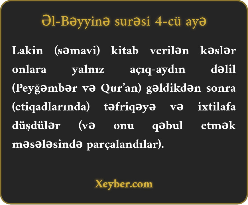 Əl-Bəyyinə surəsi - 4-cü Ayə