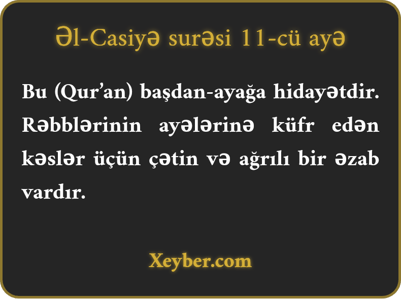 Bu (Qur’an) başdan-ayağa hidayətdir. Rəbblərinin ayələrinə küfr edən kəslər üçün çətin və ağrılı bir əzab vardır.