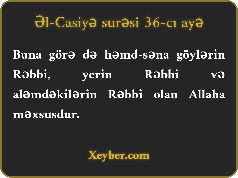 Buna görə də həmd-səna göylərin Rəbbi, yerin Rəbbi və aləmdəkilərin Rəbbi olan Allaha məxsusdur.