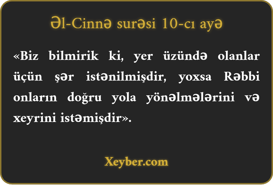 «Biz bilmirik ki, yer üzündə olanlar üçün şər istənilmişdir, yoxsa Rəbbi onların doğru yola yönəlmələrini və xeyrini istəmişdir».
