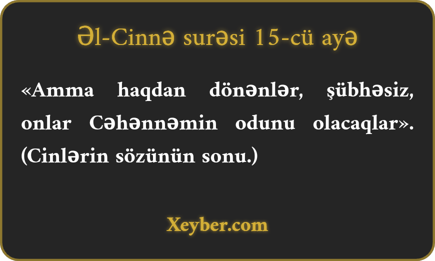 «Amma haqdan dönənlər, şübhəsiz, onlar Cəhənnəmin odunu olacaqlar». (Cinlərin sözünün sonu.)