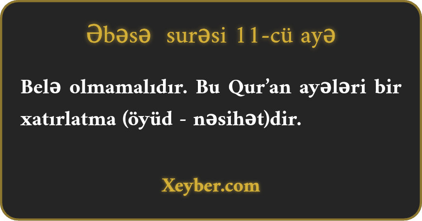 Əbəsə surəsi 11-cü Ayəsinin Təfsirləri