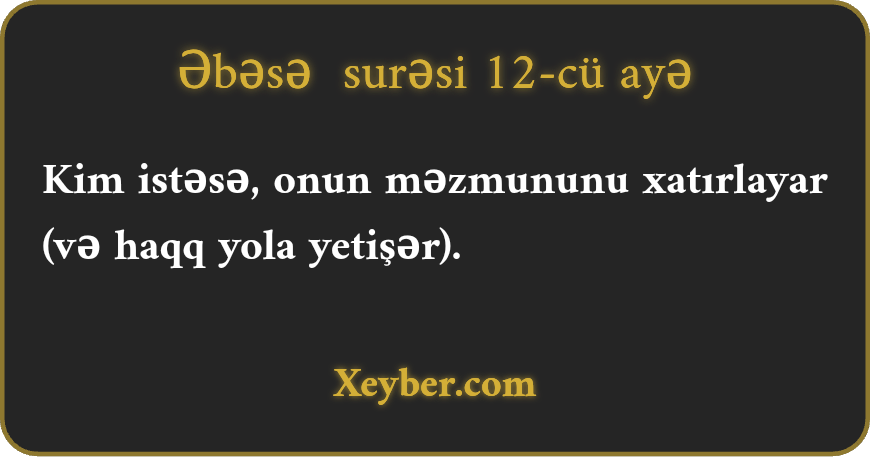 Kim istəsə, onun məzmununu xatırlayar (və haqq yola yetişər).