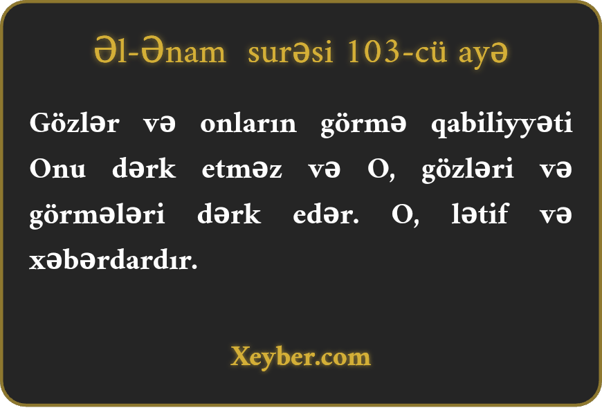 "Gözlər Onu dərk etməz, amma O, gözləri dərk edər. O, görünməyən, (dəqiq, ayırd edən) və agahdır.”