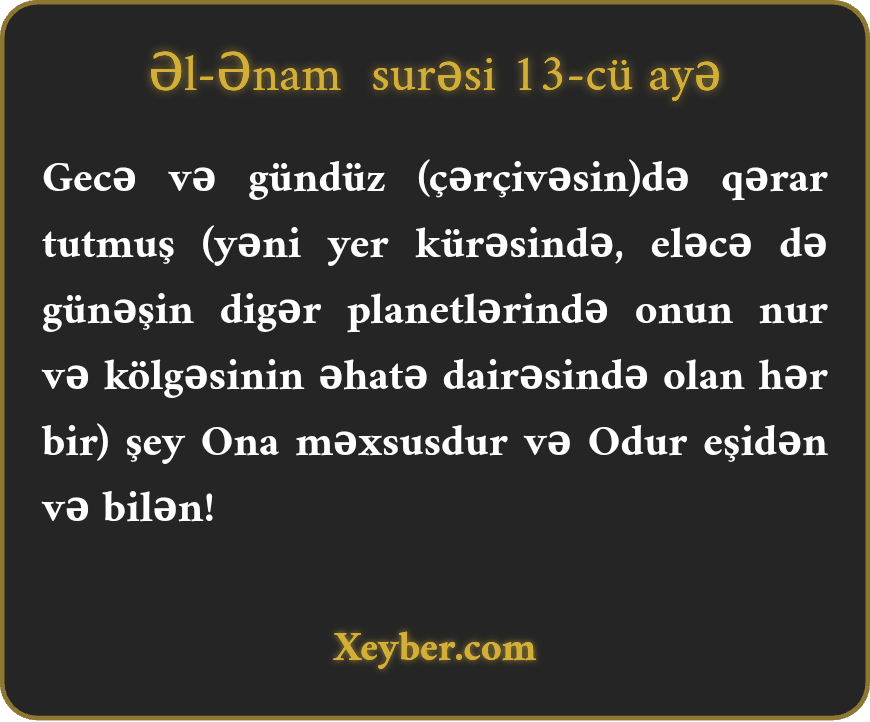 NUR TƏFSİRİ: Əl-Ənam surəsi / ayə 13