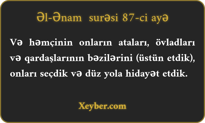 NUR TƏFSİRİ: Əl-Ənam surəsi / ayə 87