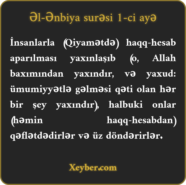 Əl-Ənbiya surəsi - 1-ci Ayə