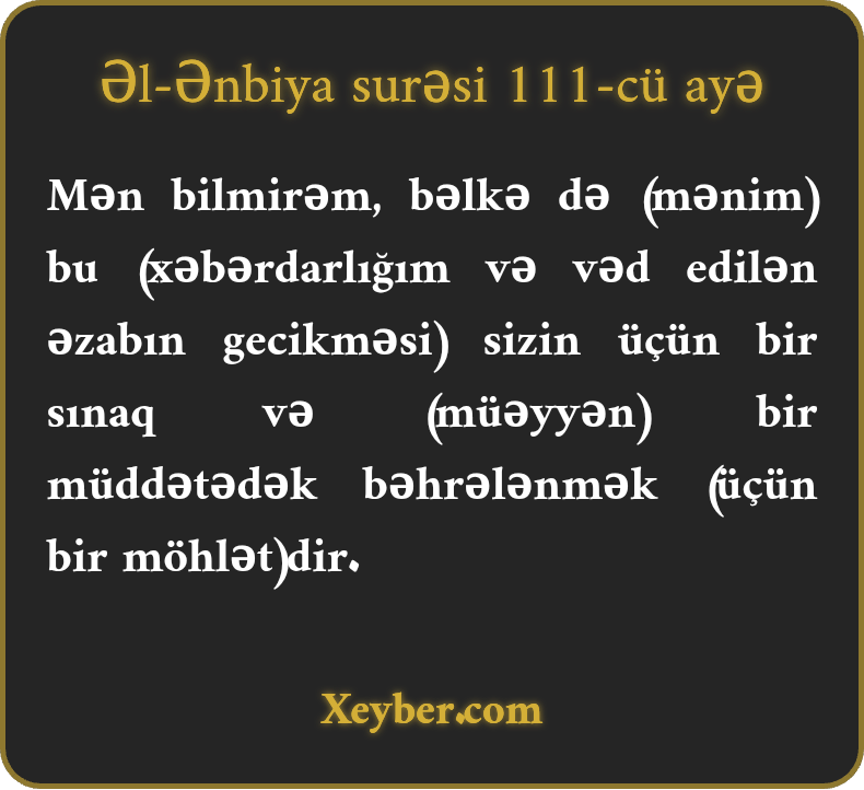 Əl-Ənbiya surəsi - 111-cü Ayə