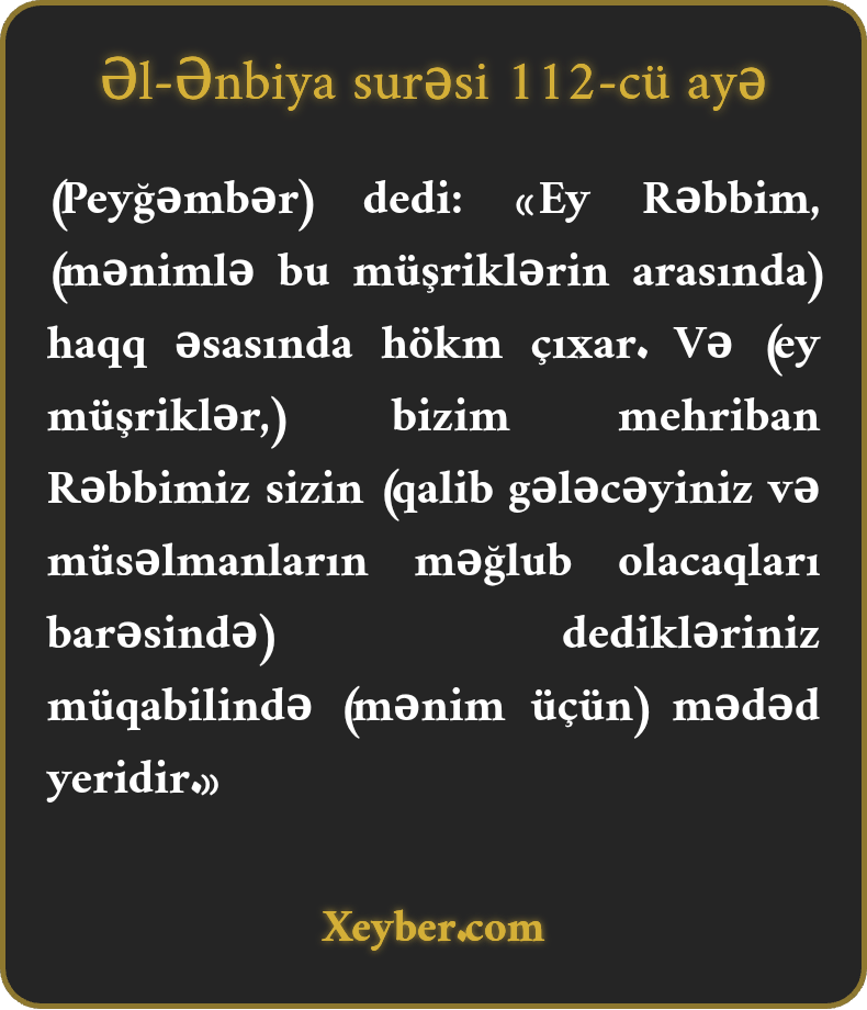 Əl-Ənbiya surəsi - 112-cü Ayə