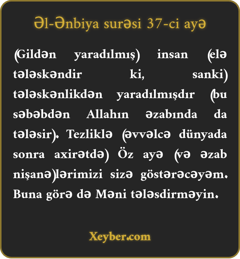 Əl-Ənbiya surəsi - 37-ci Ayə