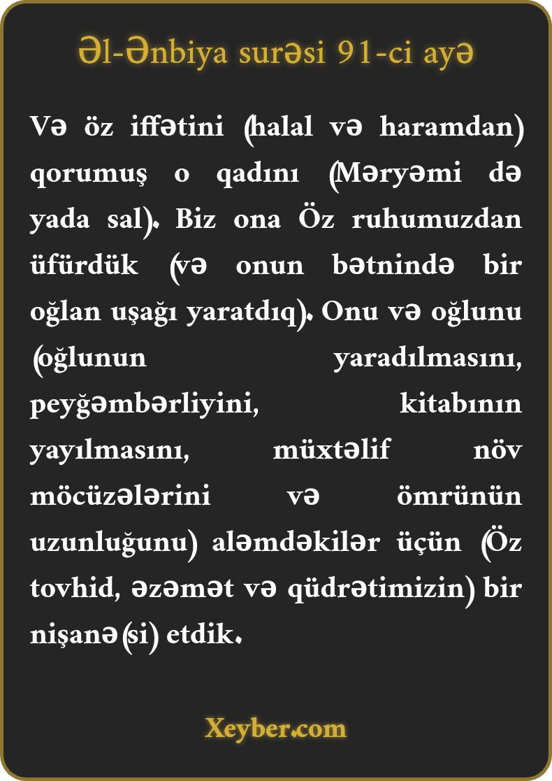 Əl-Ənbiya surəsi - 91-ci Ayə