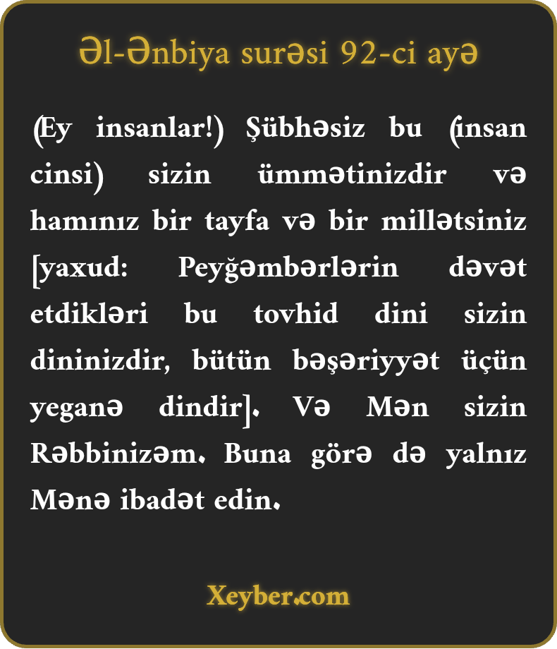 Əl-Ənbiya surəsi - 92-ci Ayə
