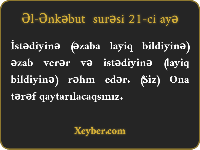 Əl-Ənkəbut surəsi - 21-ci Ayə
