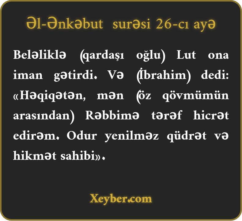 Əl-Ənkəbut surəsi - 26-cı Ayə