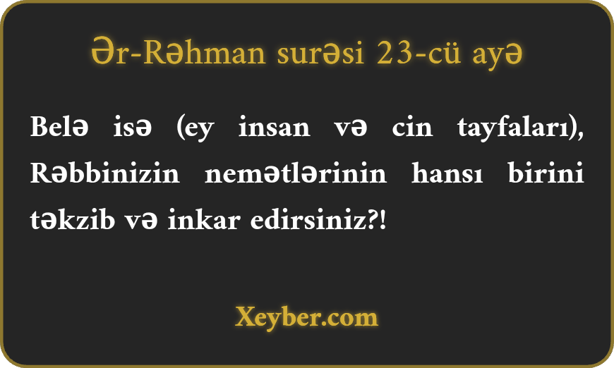 Belə isə (ey insan və cin tayfaları), Rəbbinizin nemətlərinin hansı birini təkzib və inkar edirsiniz?!