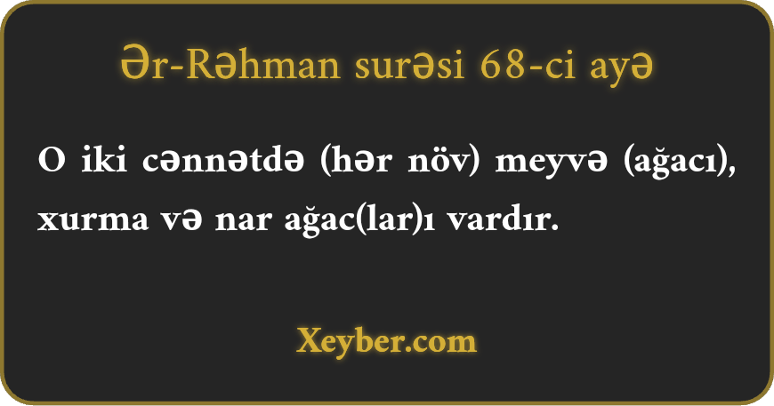 O iki cənnətdə (hər növ) meyvə (ağacı), xurma və nar ağac(lar)ı vardır.