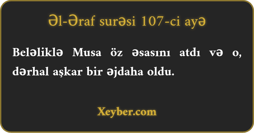 "(Musа) öz әsаsını аtdı, (әsа) qәfildәn әjdаhа şәklindә göründü.”