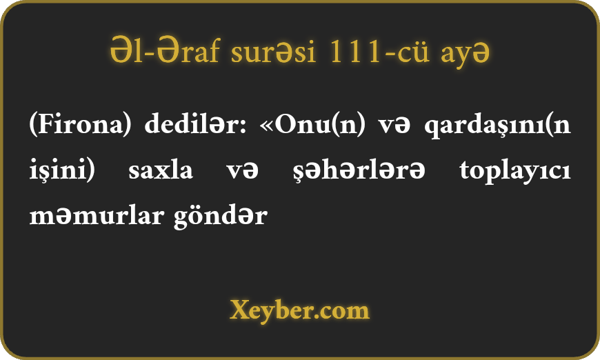 "(Firоn tәrәfdаrlаrı) dеdilәr: Оnu vә qаrdаşını (cәzаlаndırmаğı) tәхirә sаl vә (sеhrbаzlаrı) tоplаmаq üçün mәmurlаrı şәhәrlәrә göndәr.”