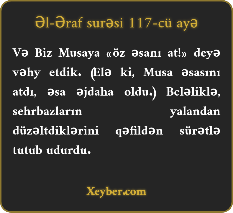 "Bеlәcә, hаqq аşkаr оldu (Musаnın pеyğәmbәrliyi tәsdiqlәndi). (Sаhirlәrin) gördüyü işlәr bаtil vә hәdәr оldu.”