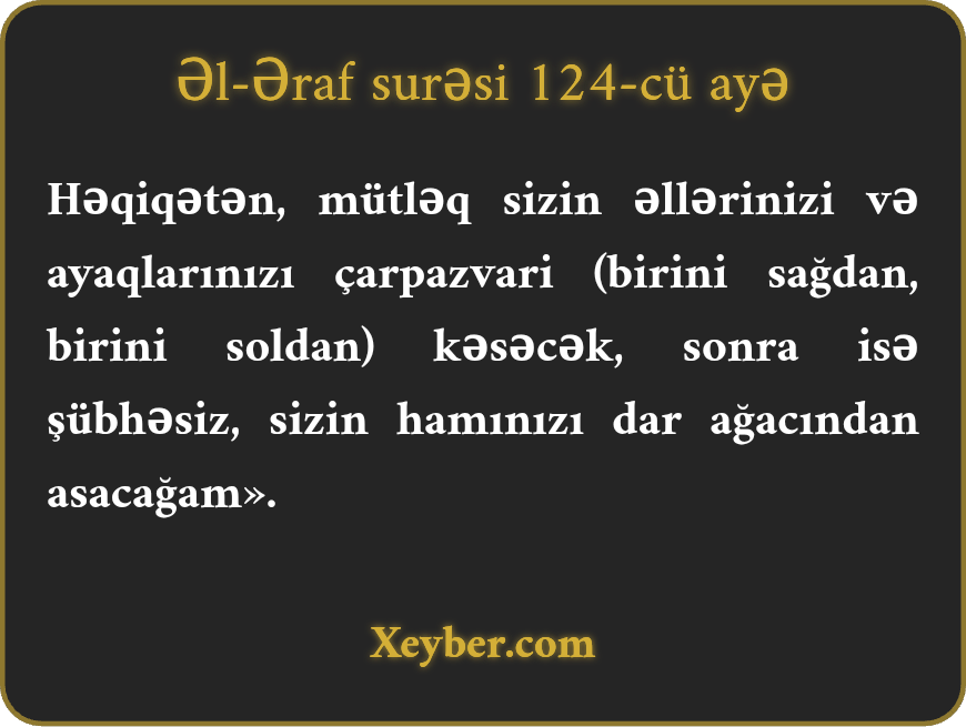 "Şübhәsiz, әl vә аyаğınızı çаrpаz vәziyyәtdә (biri sаğdаn, biri sоldаn) kәsәcәyәm. Sоnrа hаmınızı dаrа çәkәcәyәm.”