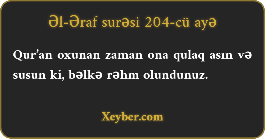 "Qurаn охunduğu vахt оnu dinlәyin vә sаkit оlun. Оlа bilsin ki, sizә rәhm еdilә.”