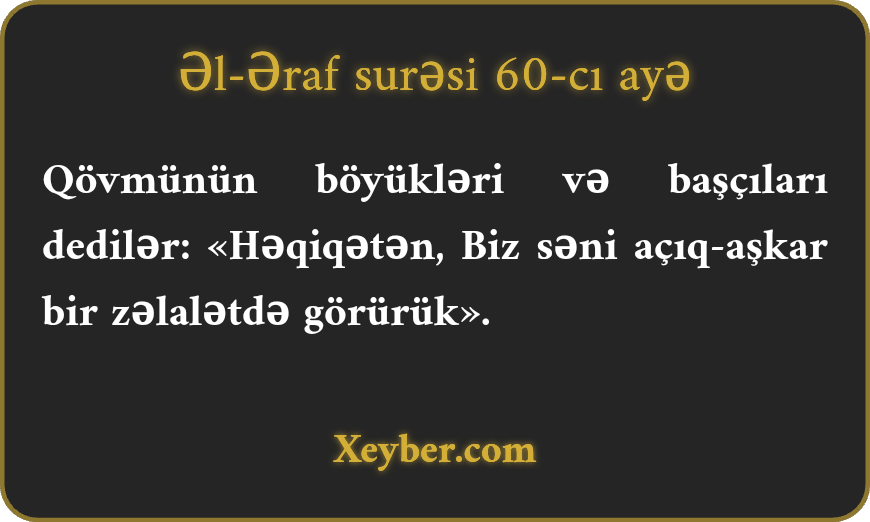"Оnun qövmünün bаşçılаrı dеdilәr: "Hәqiqәtәn, biz sәni аşkаr bir аzğınlıqdа görürük.”