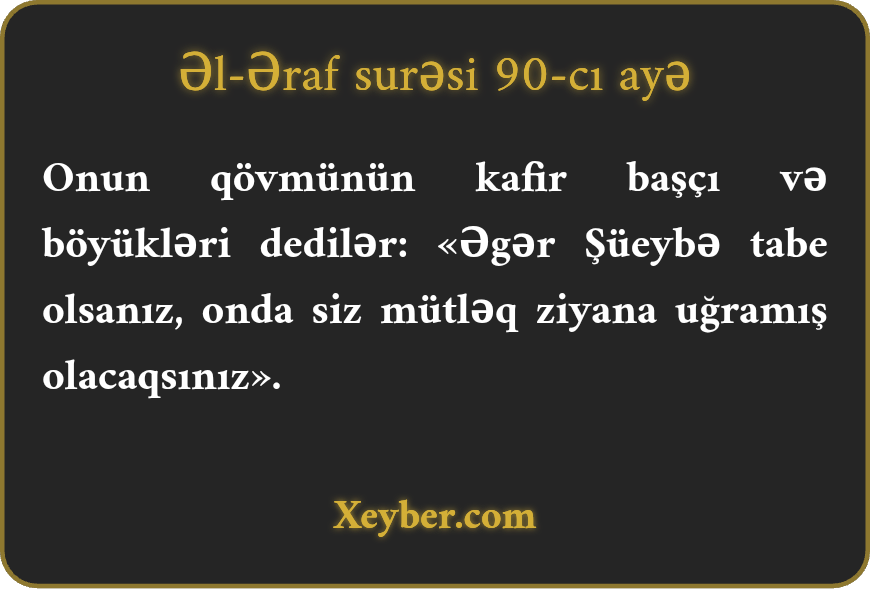 "Şüеybin qövmündәn оlаn kаfirlәr dеdilәr: Әgәr оnа itаәt еtsәniz, hökmәn ziyаnkаr оlаcаqsınız.”