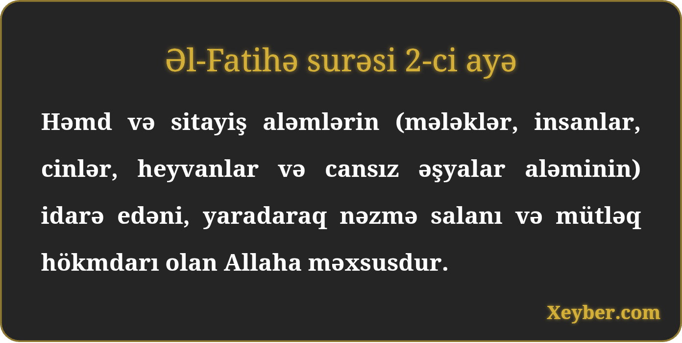 "Həmd aləmlərin rəbbi olan Allaha məxsusdur.”