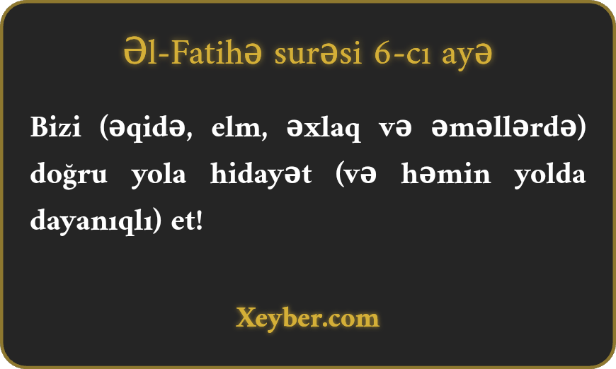 1. Bütün varlıq aləmi Allahın seçdiyi yolla hərəkətdədir. Pərvərdigara! Bizi öz istədiyin yolda qərar ver. ("İhdinəssiratəl müstəqim”) .