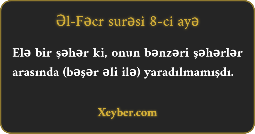 Elə bir şəhər ki, onun bənzəri şəhərlər arasında (bəşər əli ilə) yaradılmamışdı.