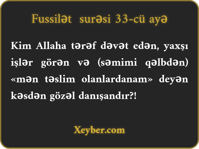 Kim Allaha tərəf dəvət edən, yaxşı işlər görən və (səmimi qəlbdən) «mən təslim olanlardanam» deyən kəsdən gözəl danışandır?!