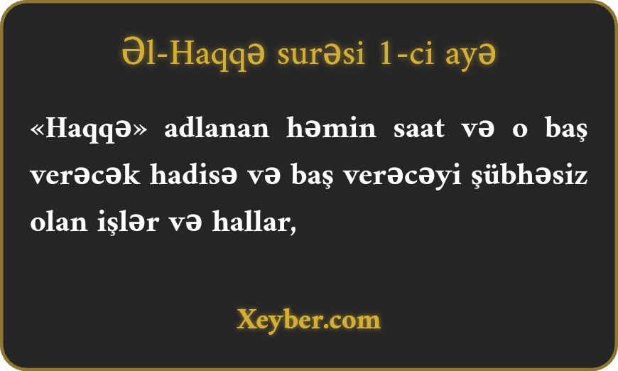 «Haqqə» adlanan həmin saat və o baş verəcək hadisə və baş verəcəyi şübhəsiz olan işlər və hallar,