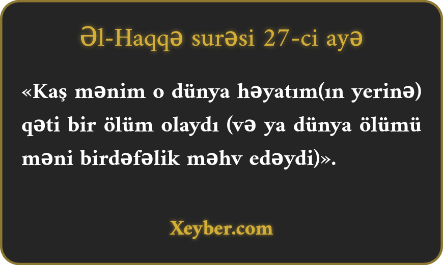 «Kaş mənim o dünya həyatım(ın yerinə) qəti bir ölüm olaydı (və ya dünya ölümü məni birdəfəlik məhv edəydi)».