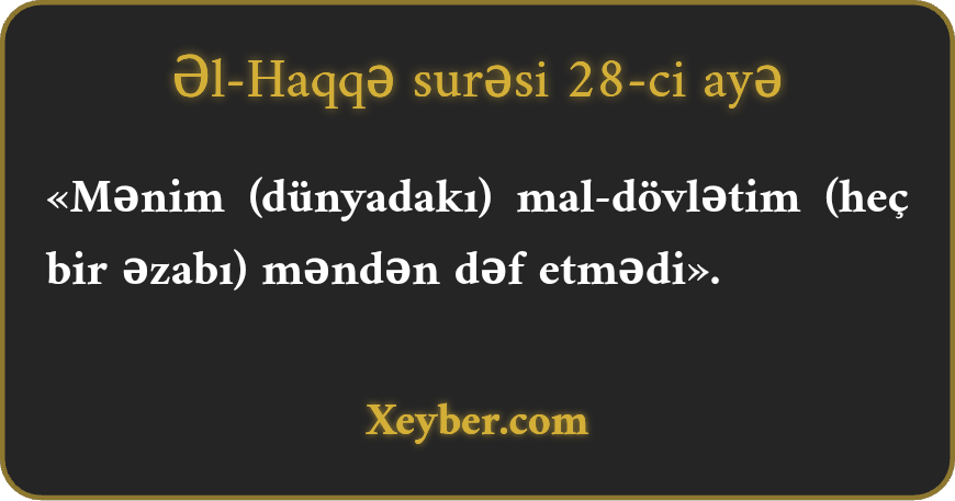 «Mənim (dünyadakı) mal-dövlətim (heç bir əzabı) məndən dəf etmədi».