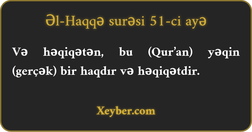 Və həqiqətən, bu (Qur’an) yəqin (gerçək) bir haqdır və həqiqətdir.