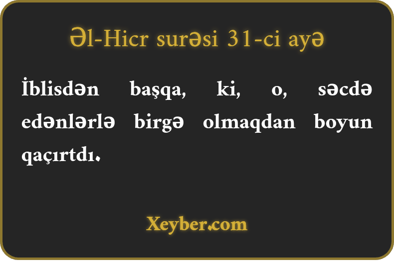 NUR TƏFSİRİ: Əl-Hicr surəsi / ayə 31