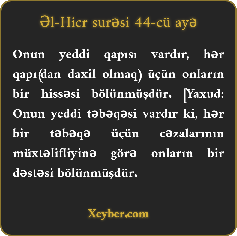 "Onun (cəhənnəmin) yeddi qapısı var. Hər qapı üçün azğınlardan bir hissəsi ayrılmışdır.”