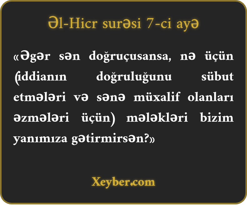 "Əgər doğru danışanlardansansa, nə üçün mələkləri yanımıza gətirmirsən?”