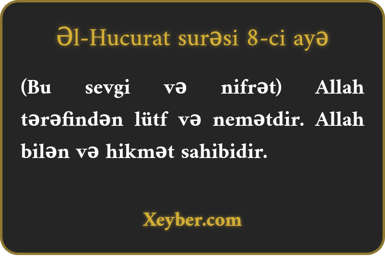 (Bu sevgi və nifrət) Allah tərəfindən lütf və nemətdir. Allah bilən və hikmət sahibidir.