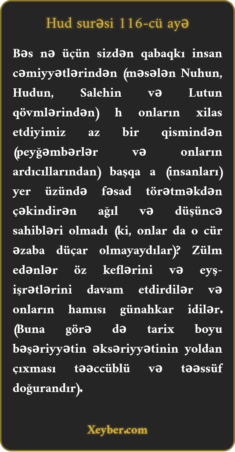 “Nə üçün sizdən əvvəlki vaxtlarda xalqı yer üzündə fəsaddan çəkindirən