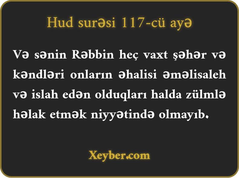 “Rəbbin xalqı islahçı olan abadlıqları zülm və sitəmlə həlak etmək