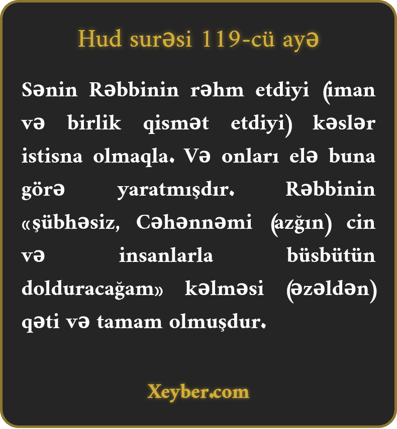NUR TƏFSİRİ: Hud surəsi / ayə 119